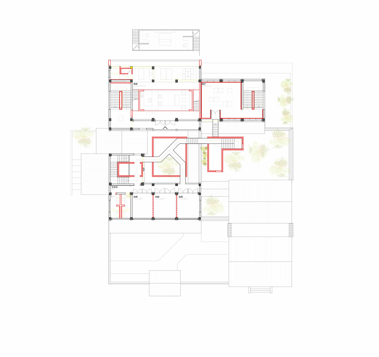 The client is a renowned industrial design company, producing modern design products inspired by traditional handcrafts, such as folding screens made by traditional Embroidery technique from Suzhou and lights based on old-fashioned paper umbrella. The client planned to build up a small museum for product exhibition and its design culture in Suzhou, one of the most important cultural cities in ancient China.