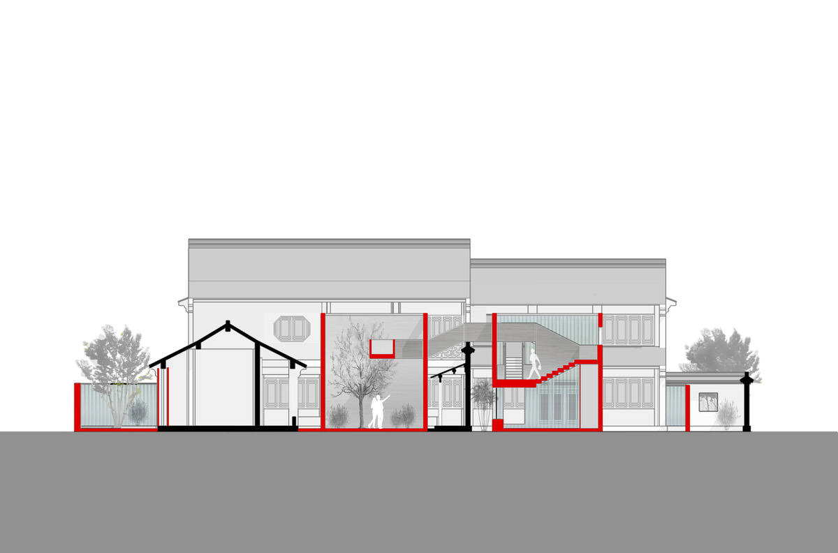 The new scheme started with this dramatic conflict and brought visitors to rethink the old and new, tradition and modernity by using a pattern of „house in house“. Newly added parts are made of metal resin and other modern industrial materials, starkly intruding into the original building. However, many spaces resembling traditional Chinese yard were created as well.