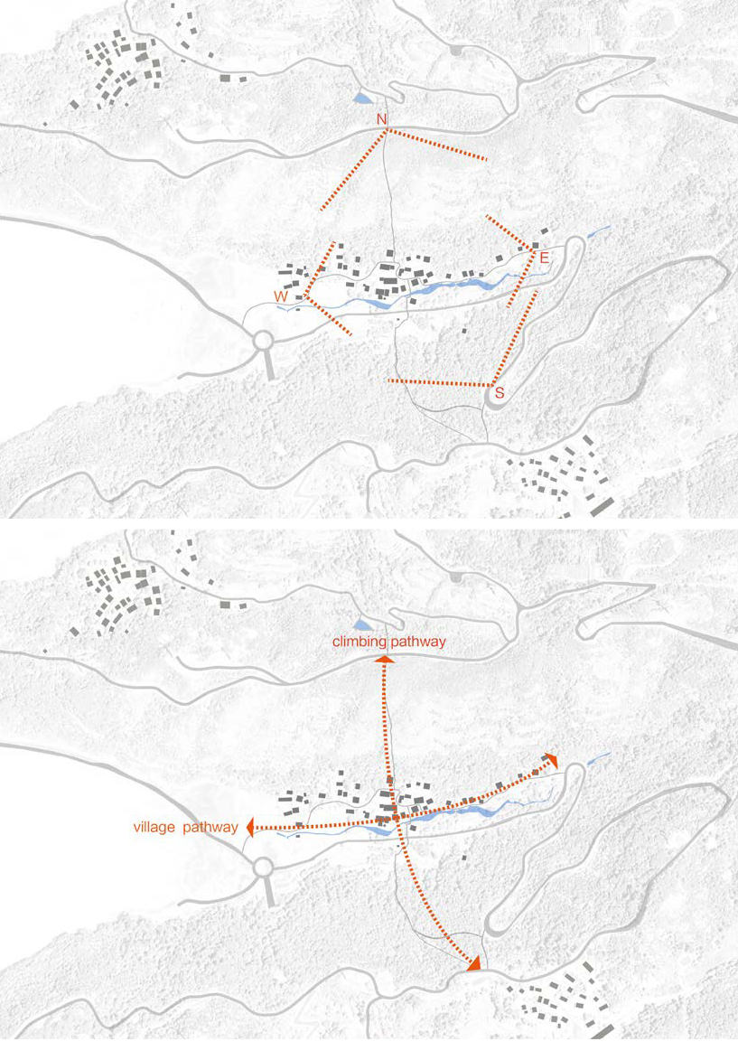 The design started with planning. Because of the excessive construction of traffic infrastructure in recent years, especially the island ring that changed the village structure completely, made the ends of the village reverse. The new scheme underlined the village structure in East-West direction and added two South-North hiking ways, creating a cross-shaped landscape sequence. On the one hand, the village is connected with the modern island ring, and on the other hand, it keeps successfully its self-sufficient spirit. The landscape design aimed at rearrangement, avoiding interference on natural environment as much as possible. For example, only small landscape scenes were added to reconstructed public houses like boardinghouse and gallery in order to indicate their new functions. Local building materials and vegetation were widely used, which is the method preferred by the architects to recover the original landscape of island villages.