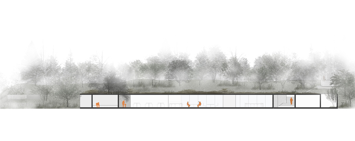 The service station of 460m² is located in ecodistrict of the park in North. The ecodistrict pays much attention to environmental protection and the service station is the only building providing catering and recreational functions within the park. It consists of a cha chaan teng (tea restaurant), an outdoor dining area and a waterfront terrace as well as WCs. In South there is a quiet water surface while in North lush vegetation covers the ground. In order to take full advantage of the waterfront landscape, the whole building extends along the water bank. Instead of hiding the buildings, the ambition was to create a pleasant space made both by the natural environment and a placid architecture which meets entirely its functional requirements.