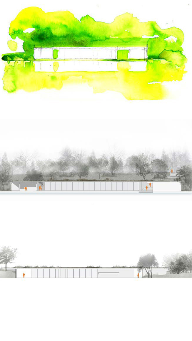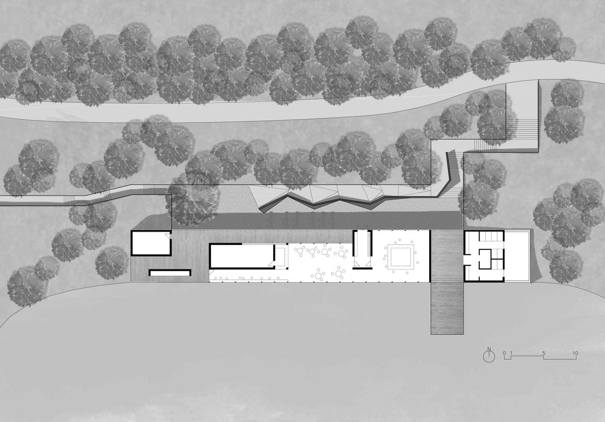 This service station is located in the planned Daihe Civic Park, which is an urban green landscape band unfolding along Daihe River, occupying ca. 112 hectares. The whole park has a basic tone of natural landscape with allocations of small facilities for resting. The starting point of the design was integration of the natural and the man-made.