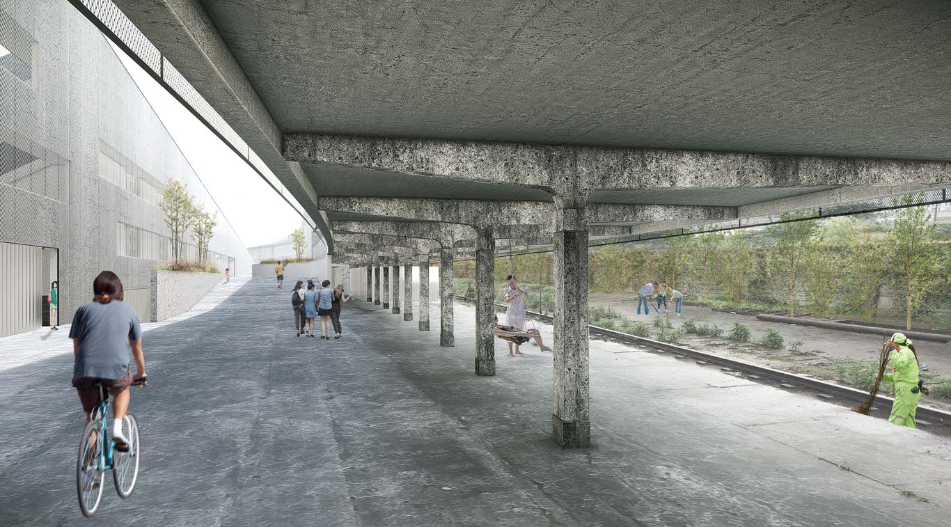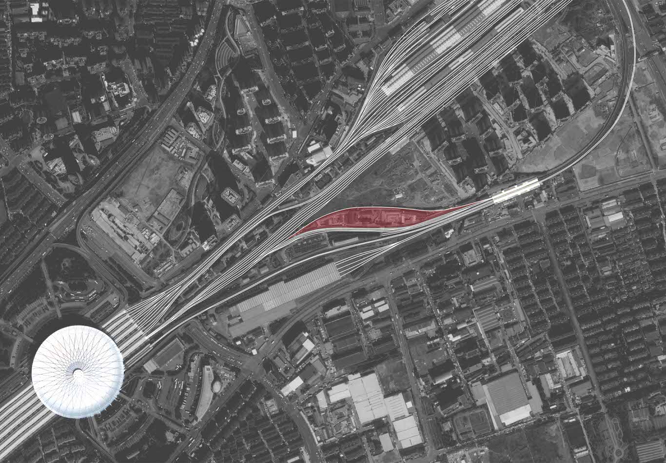 The site is located on northeastern side of Shanghai South Station, where used to be a wares railway station for Bright Food (Group) Co.,Ltd. An old delivery platform still remains on site. An original railway track and the present light rail track confine the site, forming a longish island, on which dormitory apartments for young employees will be built.
