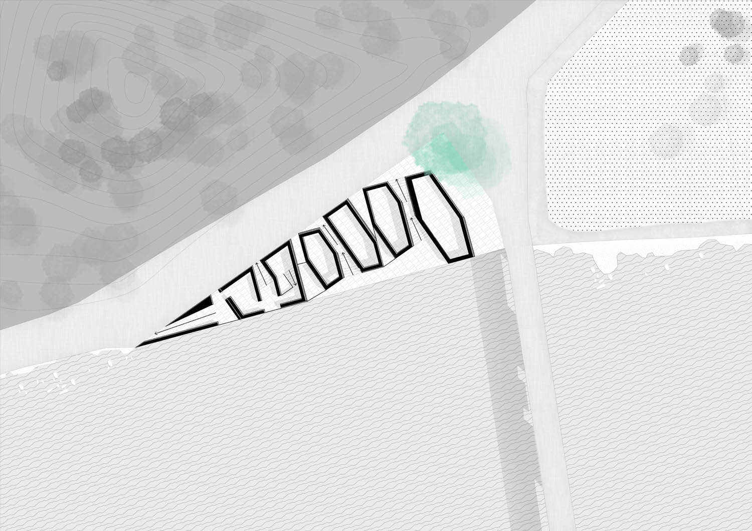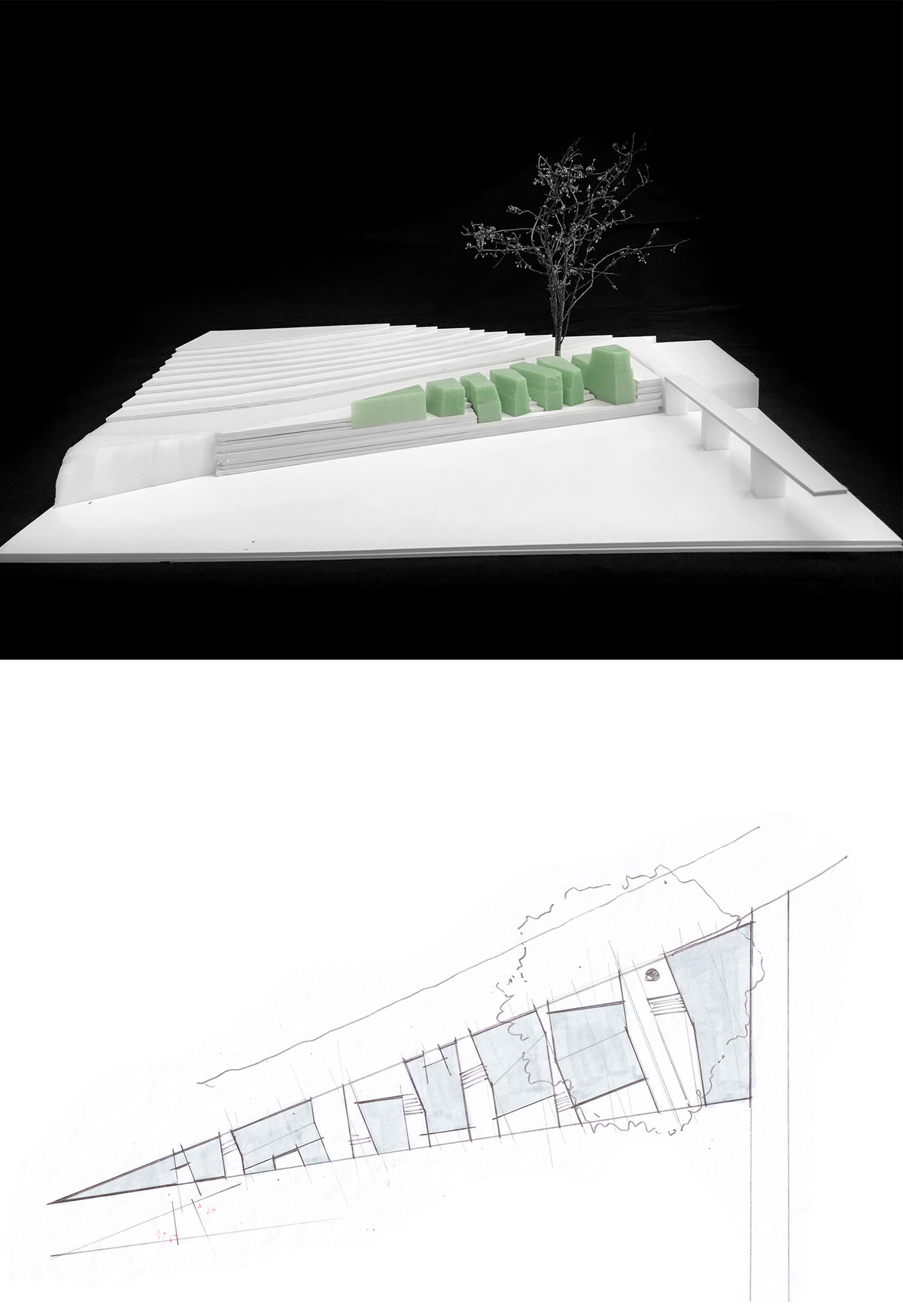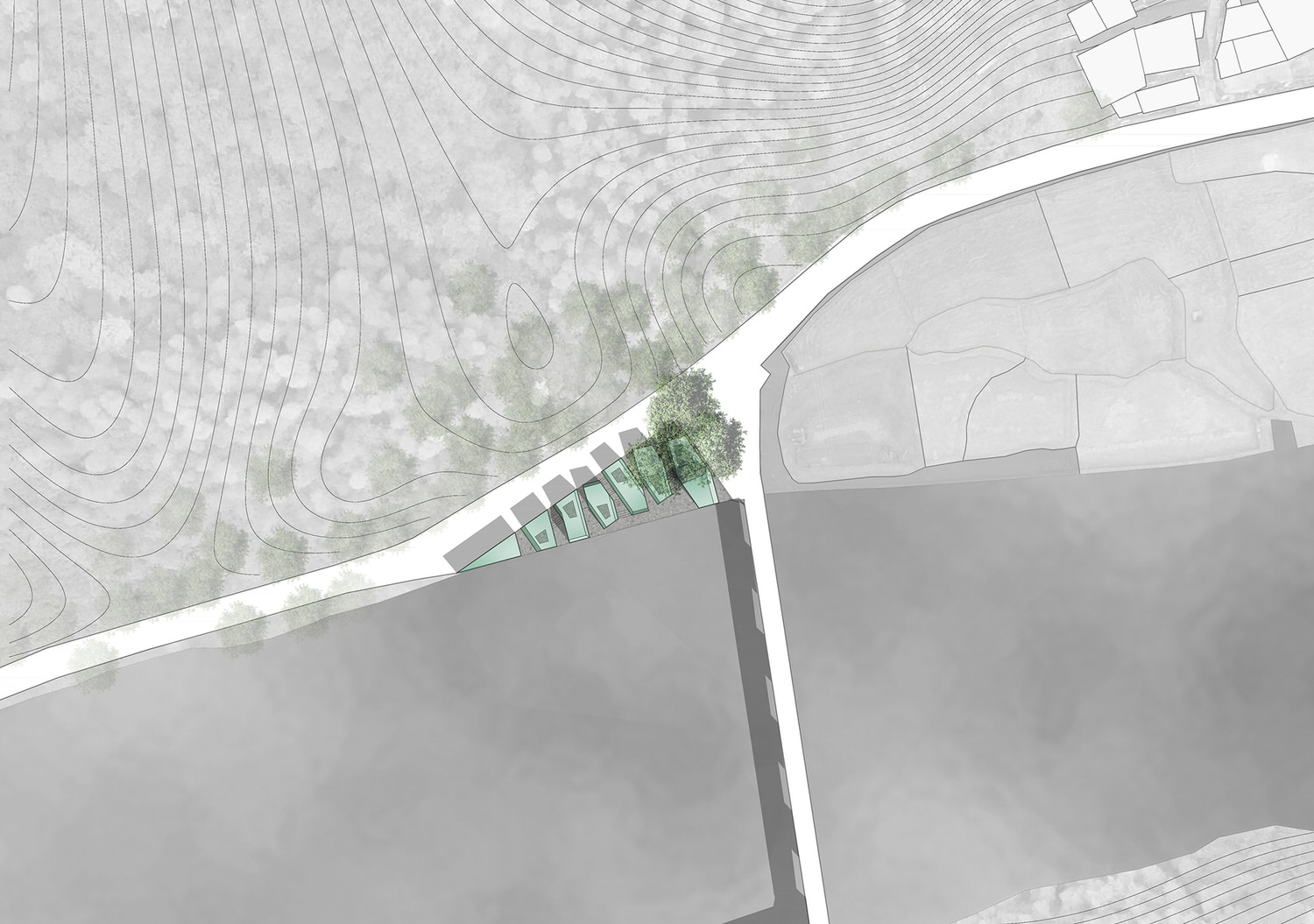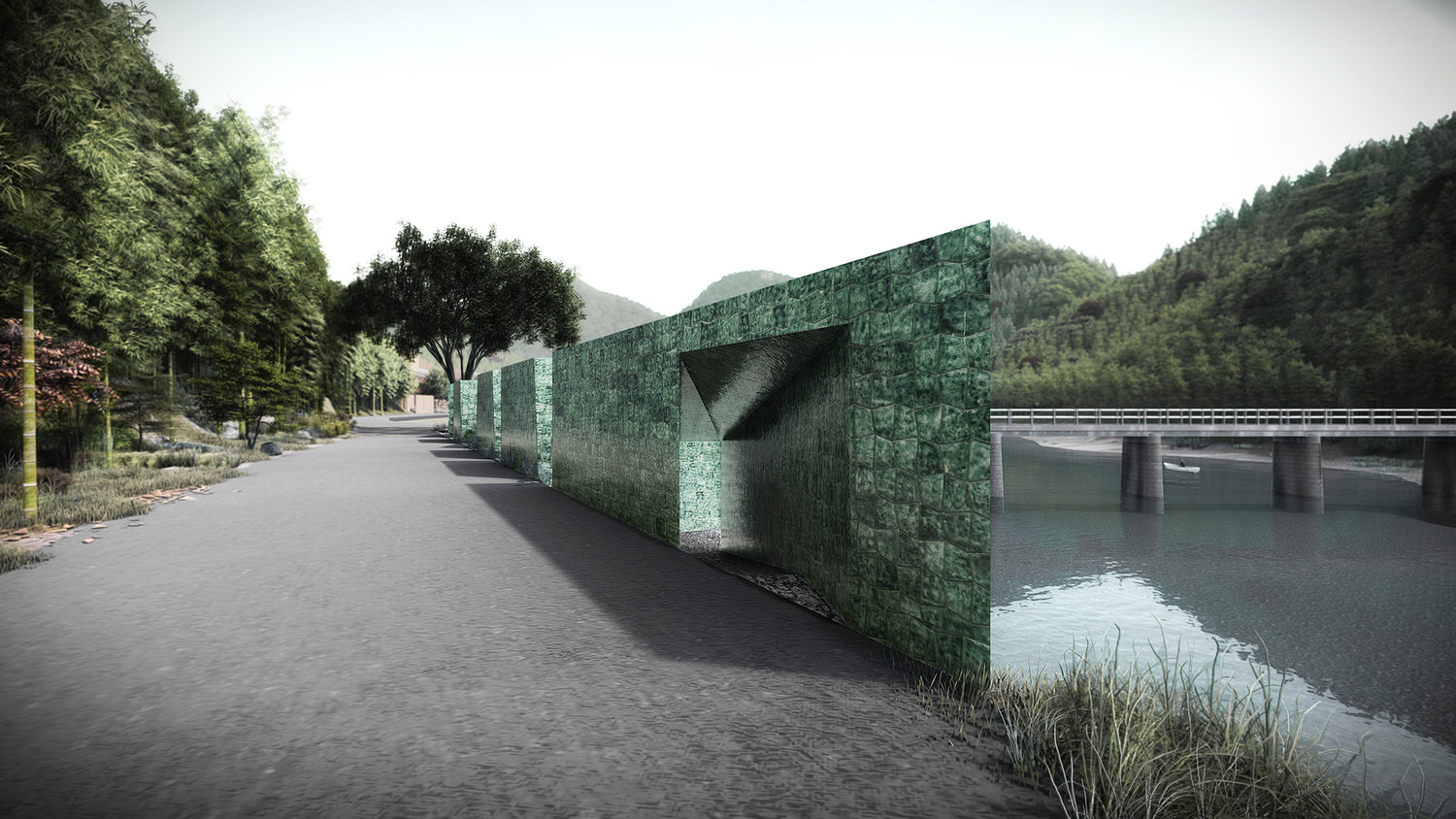 The calcination of Longquan Celadon began more than 1700 years ago and reached its peak in the Song dynasty. It is one of the historic celadon kilns with the longest calcination history, the widest distribution of kilns, the highest product quality requirements, the largest production scale and export scope in the ceramic history of China and even the world. The celadon wares were transported to the banks of Meixi River, about 3 kilometers away from the kiln, then to the Oujiang River via bamboo rafts, whence they were shipped further to the southeast coast of China and overseas areas. This project aims to build a small tourism information exhibition space for the site of the warf on the Meixi River. In order to protect the "authenticity" of the wharf ruins, it is located beside the Meixi River, 500 meters away from the original wharf site. A small but striking landmark is to be constructed by combining the modern design with the iconic color of celadon. The design concept is to set off the rich historical value of the site, and to create a spiritual mood in time and space through concise architectural language.