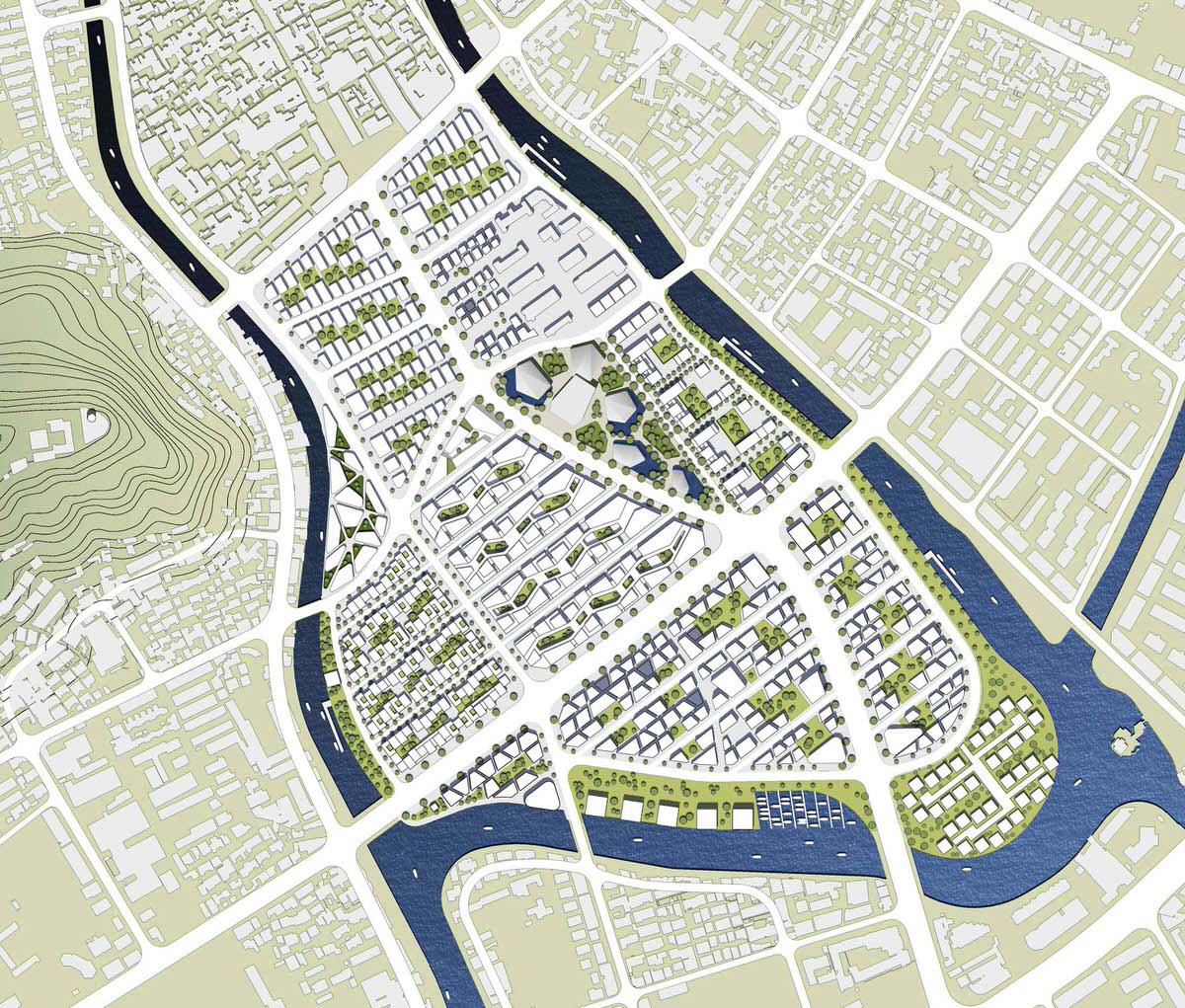 Different from the government’s opinion, the architects stopped the high-rise building plan immediately and put the old town into the context of traditional urban layout through reduction of building height and increase of building density. The final result particularly underlined the following three aspects: