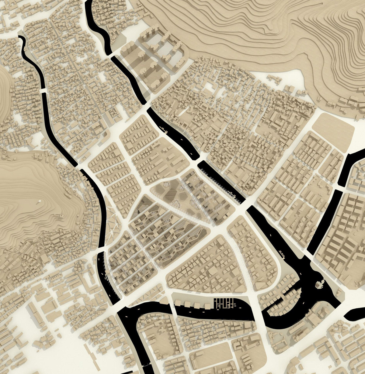 Structure: recovered the main roads of North-South direction and the ‘fishbone-like’ urban structure: conceived of East-West bypasses.