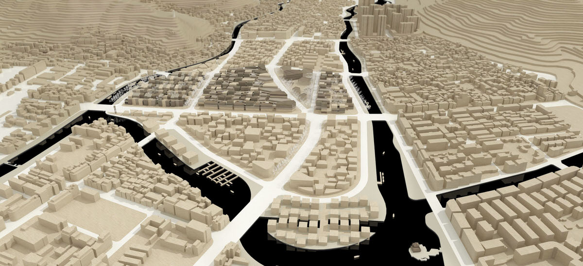 Space: built main and subordinate roads, lanes, and centers and rebuilt the traditional life space near water.
