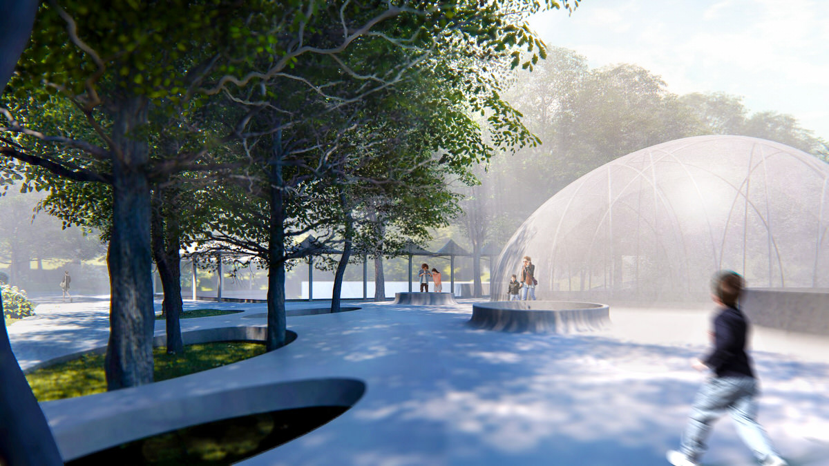 Hangzhou Zoo is a public park at the heart of West Lake Scenic District. It situates in a hilly region south of West Lake. The peaks and troughs of the hills covered by dense vegetation and scattered animal exhibits cohere the zoo’s famous landscape. As the conservation awareness grew, the old “animal circus theatre” will be suspended. In its place, the zoo management team wish to provide, to the millions of annual visitors, innovative edutainment experiences themed around animal conservation, through new media exhibition and performances. As a result, the key deliverables are a dome theatre and a promenade exhibition hall.