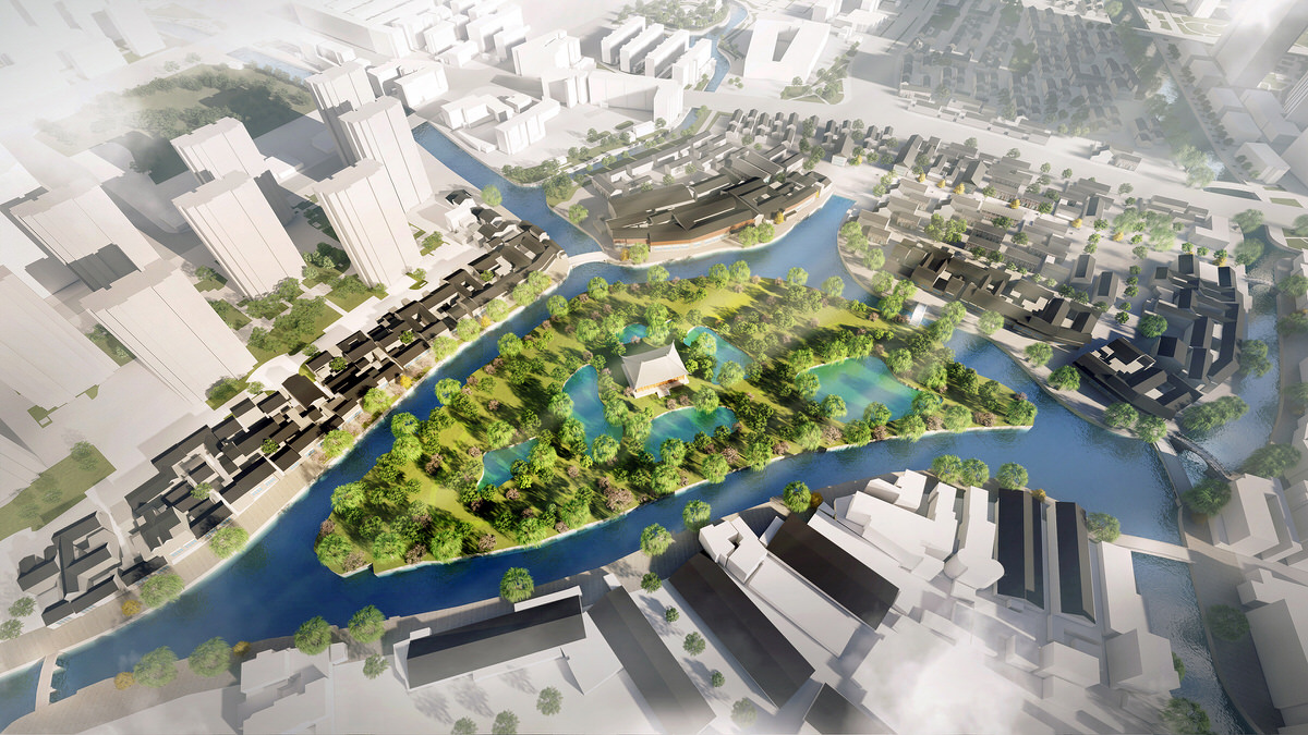 The scheme that addresses the urban area of the river aims at improving the vitality of both the water and its banks; focusing on the excavation of the industrial age historical relics near the Beijing-Hangzhou Grand Canal section; and restoring the overall structure of the historical waterfront in the San Dun Area. (Literal translation: the three peninsula. San Dun is a historical riverside town on the western boundary of the city.)