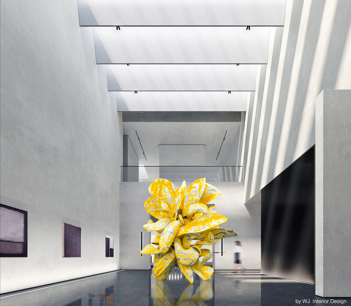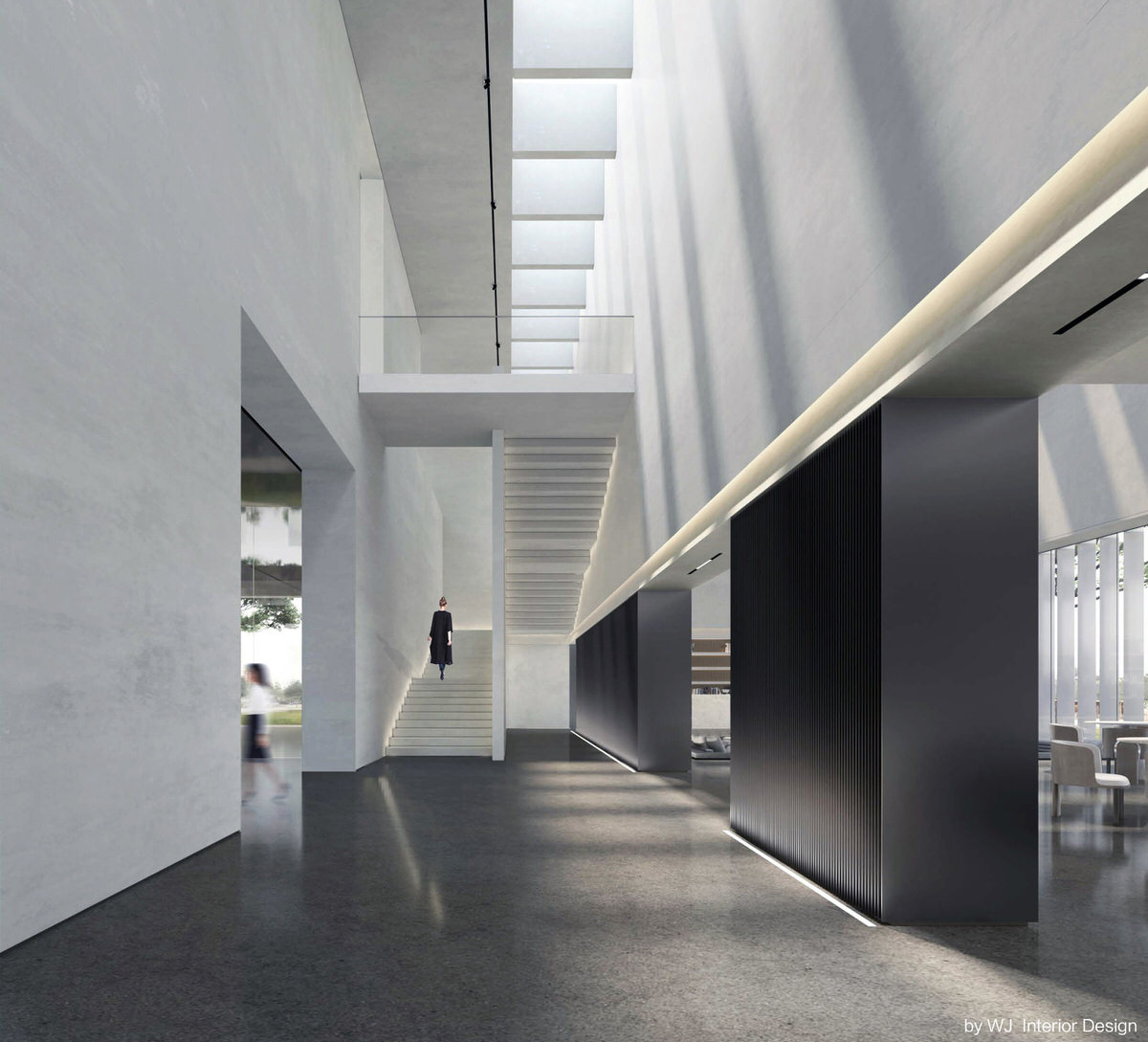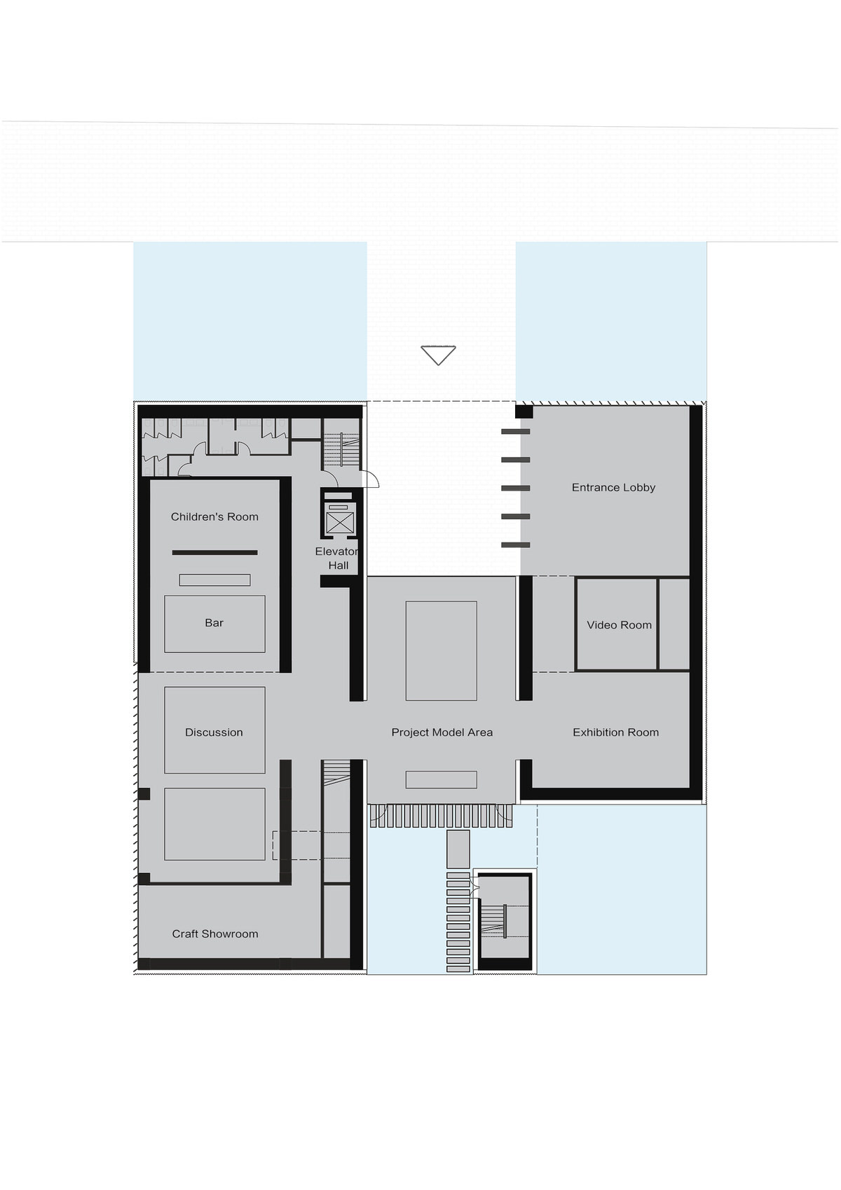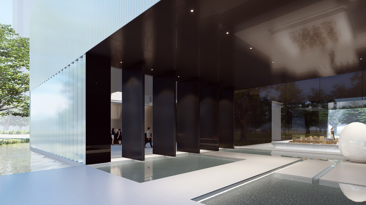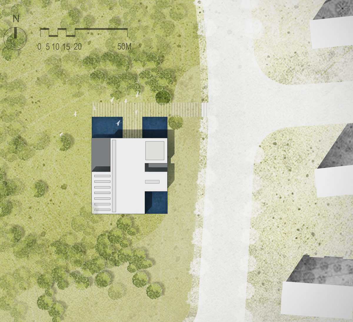 The project is located on a public green space in a newly developed urban residential area. After completion, it will be used as the sale center for surrounding development. It will be repurposed to be a community art gallery for the public in the long term. For either of the purposes, the building is expected to become an iconic landmark of the area. Due to size constraint of the building area, and the fact that the site is an open public green space, we, from the perspective of urban design, view the building as a large installation in the public green space. Therefore, our scheme is designed to strengthen the contrast between the building and its surrounding green space.