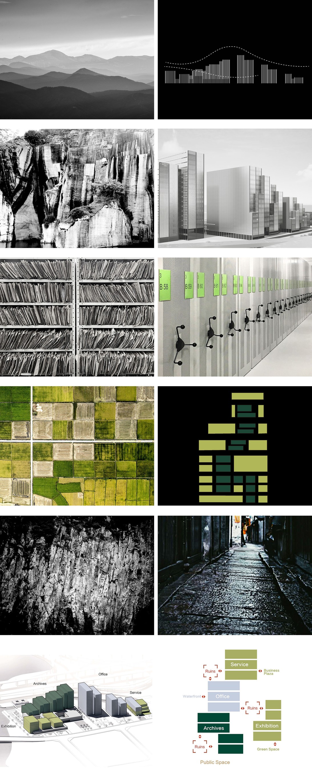 The design draws inspiration from the shapes of the mountains and quarries surrounding Shaoxing, as well as the orderly arrangement of archives warehouses. It employs a modern architectural language to reinterpret typical traditional spaces such as alleys, corridors, and courtyards. By finding an appropriate location within the context and responding to the urban surroundings through architecture, it stays true to the site and remains self-contained.